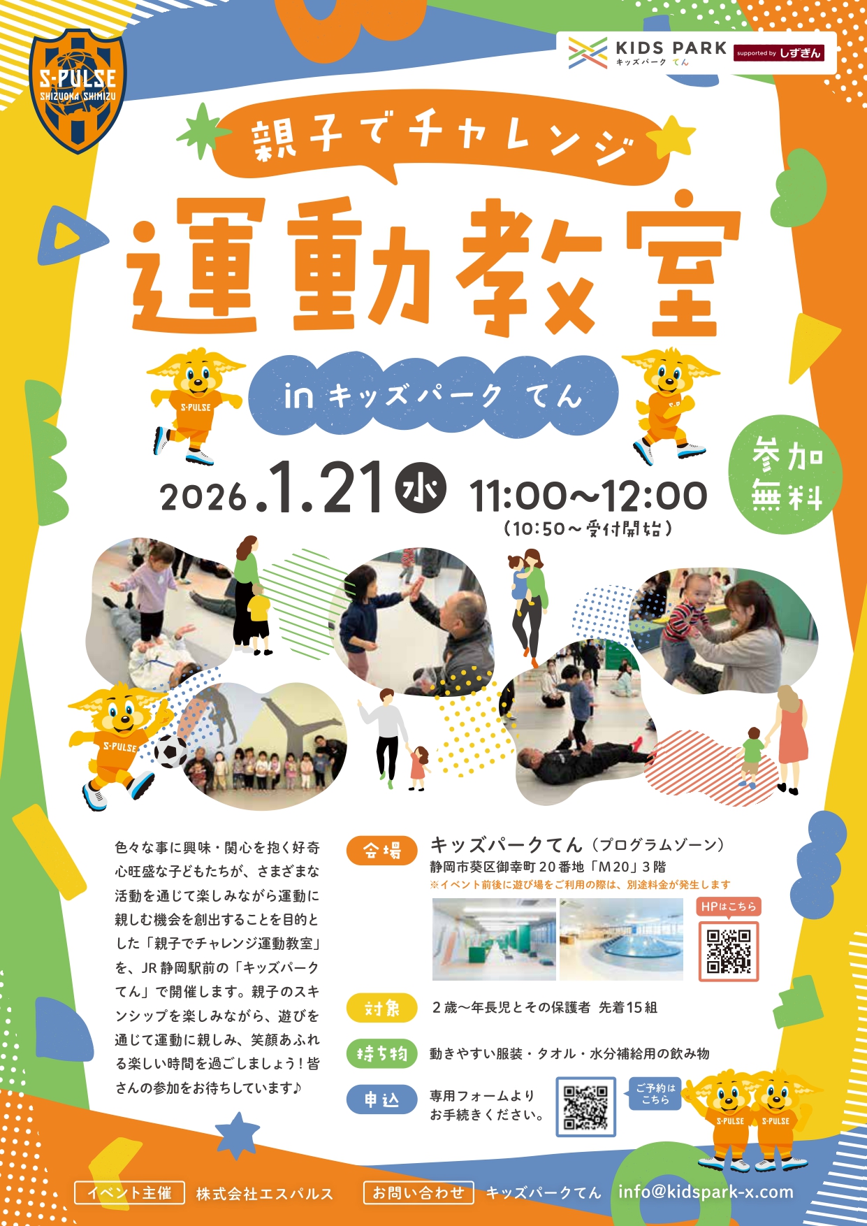 ~1/21(水)エスパルス親子運動教室のお知らせ~
